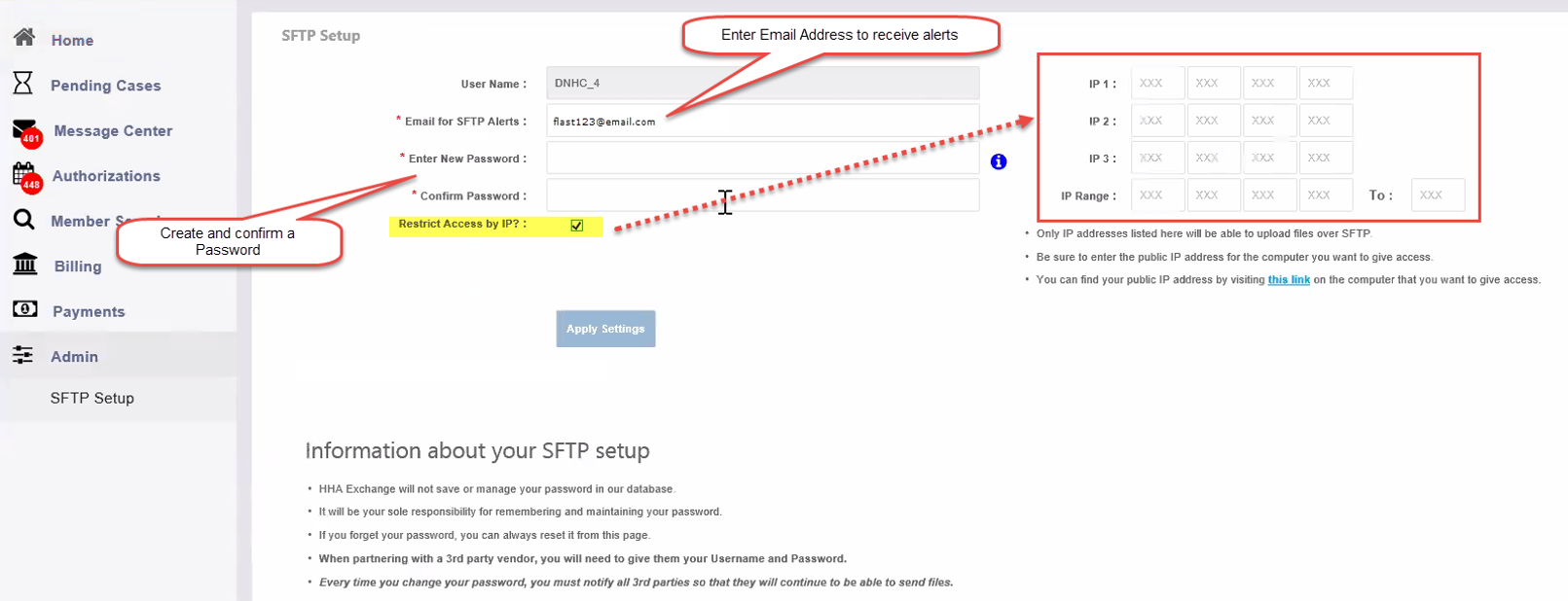 The portal does not store or recover your password. You are responsible for keeping it secure. If you forget your password, you must reset it from the SFTP Setup page.