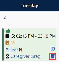 Delete Visit and Schedule: This will unbill the visit, invoice, or batch and delete all visit information, both schedule and confirmation.