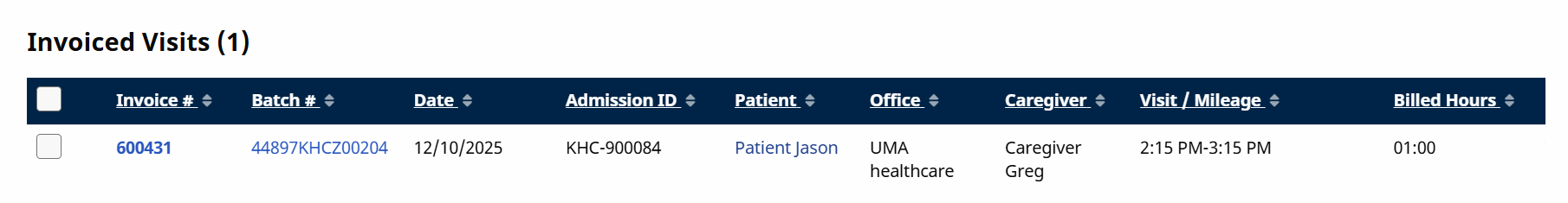 Delete Visit: This will unbill the visit, invoice, or batch.