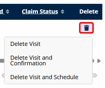 Delete Visit and Confirmation: This will unbill the visit, invoice, or batch and remove all visit confirmation information.