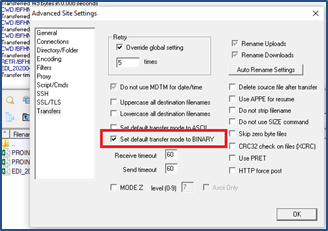 When transferring files via SFTP, select the BINARY mode in the FTP client application.