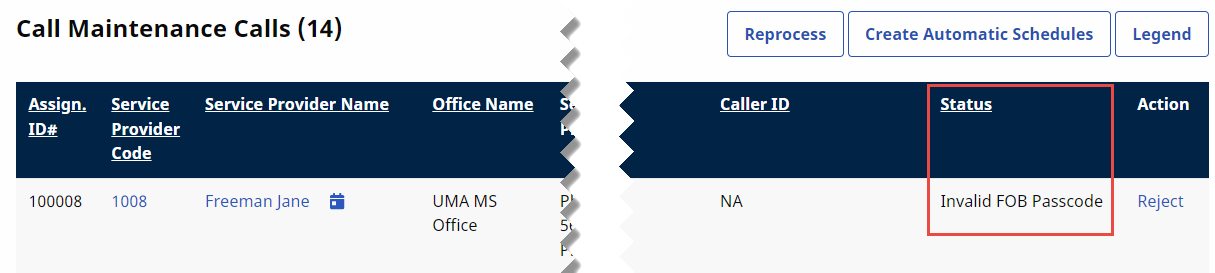 Invalid and Expired FOB Passcode cannot be linked to visits. The only course of action with these issues is to Reject the EVV.
