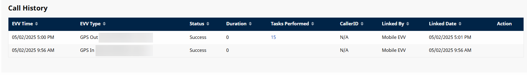 The Caller ID is not available in the image above because the EVV was placed using the Mobile App.