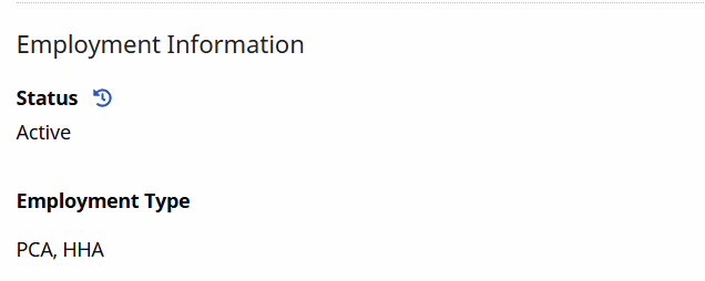Go to Caregiver >Profile to review the Caregiver’s Employment Types.