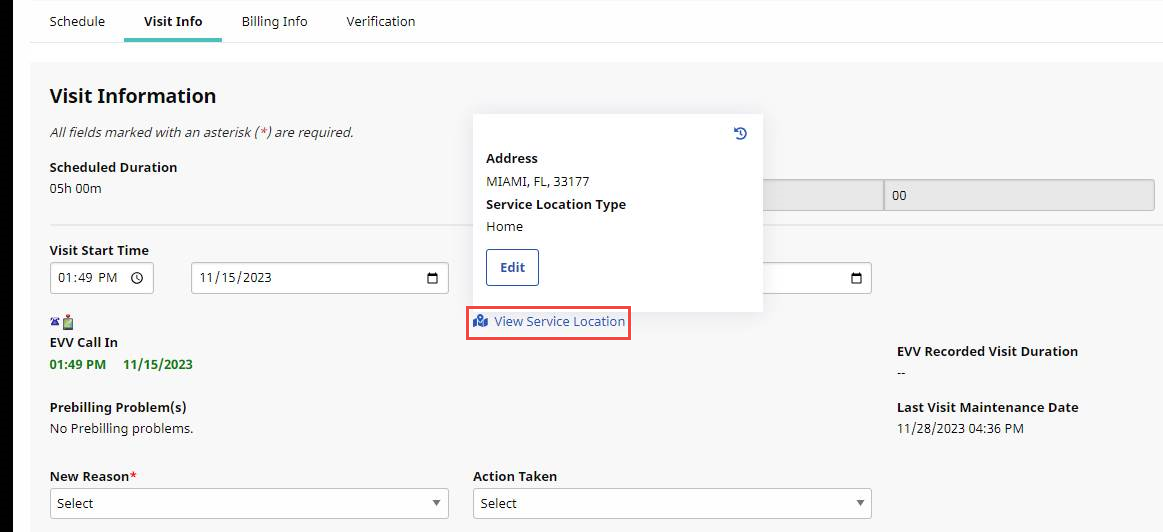 For EVV Visits with existing Service Delivery Locations, Providers can view and edit location information. In some cases, location information requires editing to correct an invalid or inaccurate location. When a visit is outside the 95-day lock period, users can no longer edit or update the information.