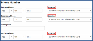 When saved, the Phone Location fields are populated with the associated addresses on the Patient Profile page.