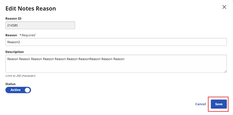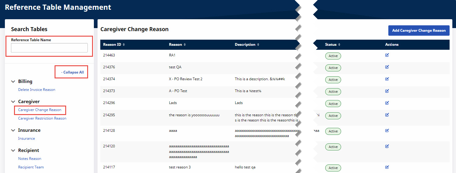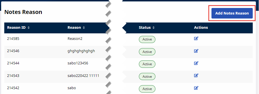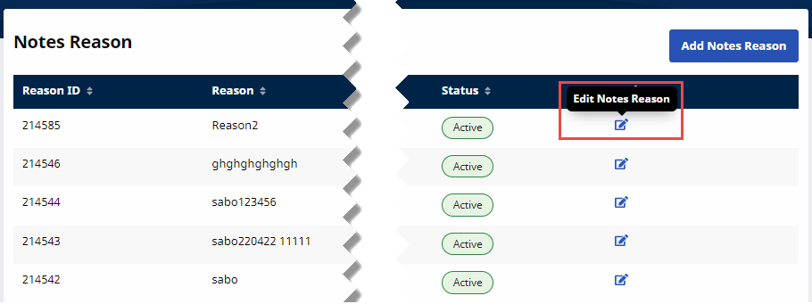 Select the Reference Table and click the Edit icon at right (Edit Notes Reason in this example).