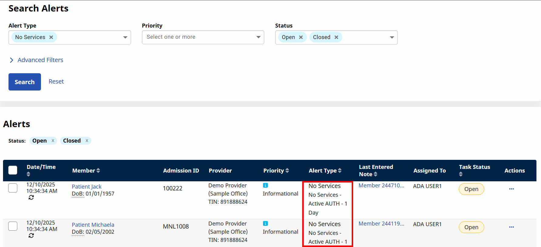 The No Services Alert is now available. This new alert notifies the Payer that a Member is not receiving services within a configurable timeframe.