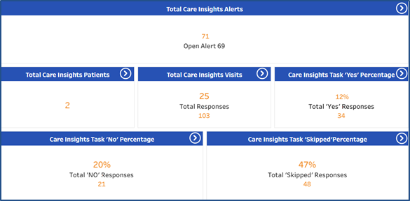 Total number of Visits with Care Insights tasks | Total Care Insights Responses (Yes, No, or Skipped). |