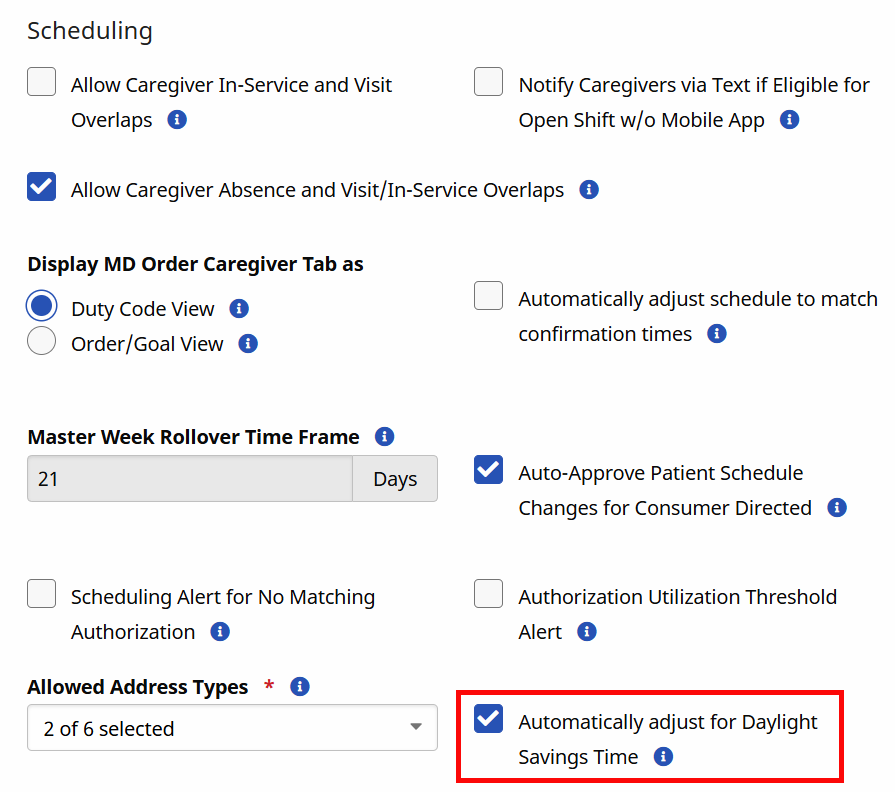 Use the Daylight Saving Time (DST) Adjustment setting when you want HHAeXchange to automatically handle the extra hour gained in the fall or the lost hour in the spring for overnight visits that cross 2:00 am. This helps keep billing and payroll accurate without requiring manual edits for most shifts.
