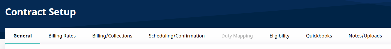 The Contract Setup feature, under Admin > Contract Setup, is comprised of seven pages, and allows users to add new or edit existing Internal Contracts. Users can adjust Authorization requirements, set compliance rules, setup and view billing information, add billing rates, and adjust settings for eligibility checks, audits, and collections.