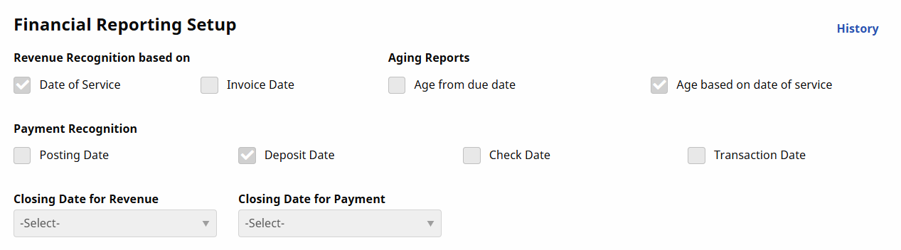 Select either Date of Service or Invoice Date to indicate when the Agency recognizes revenue. |