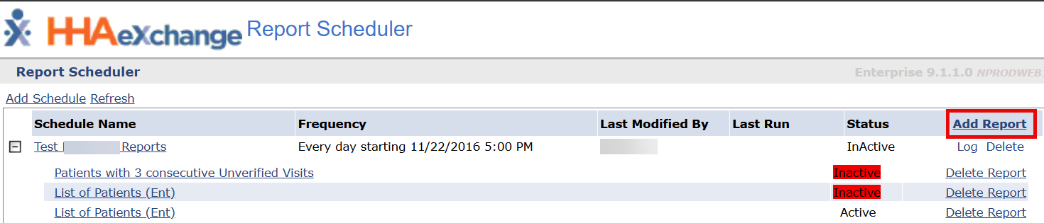 On the Report Scheduler page, select the Add Report button.