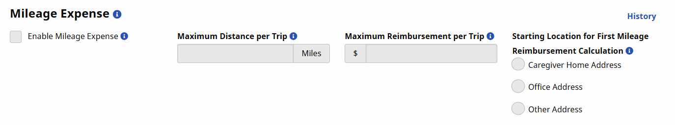 Use this field to set an amount limit of miles a Caregiver is reimbursed for per trip. |