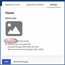 Click the Choose File button to upload the Agency Logo to the application.