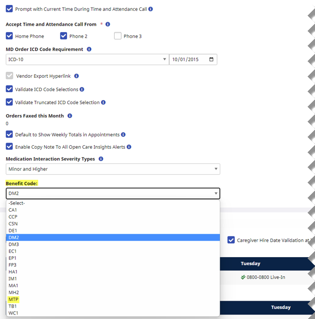 In the Agency Info page under Admin > Agency Profile, Providers select the Texas Medicaid Benefit Code from the Benefit Code field to associate with the Agency relating to 837I and 837P claims. The default field value is CCP (Comprehensive Care Program).
