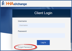 Users can reset their own password directly from the HHAeXchange client login page by following the steps below.