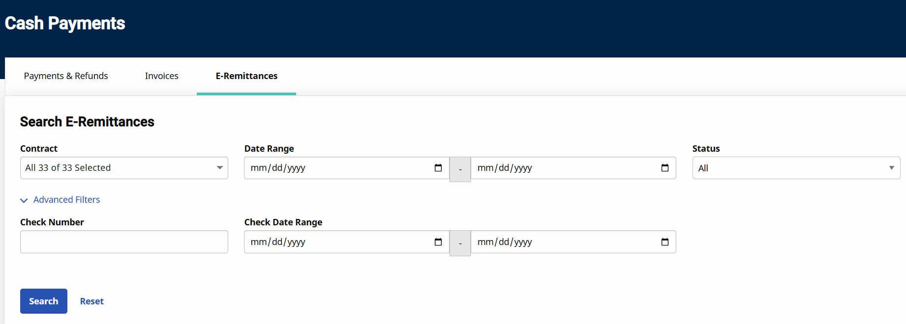 Providers can view payment details from the overnight file process using the Cash Payment feature under Billing > Cash Payment > E-Remittances. Details include rejections and/or invalid amounts for each contract.