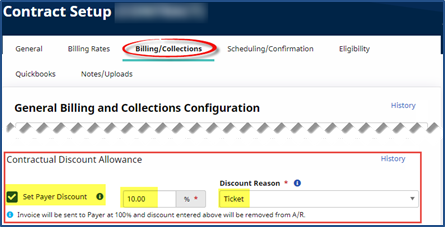 For example, a 10% Payer Discount is entered for a Contract with Contractual Agreement as a Discount Reason.
