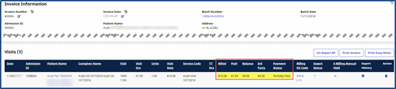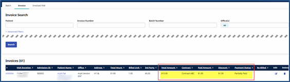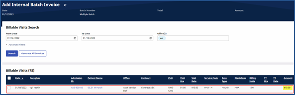 When an invoice is created for visits under this Contract, the Visit Bill Amount shows as $10.