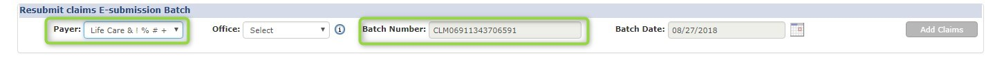 On the Resubmit Claims E-submission Batch screen, select the Payer from the Payer field to generate a new Batch Number.