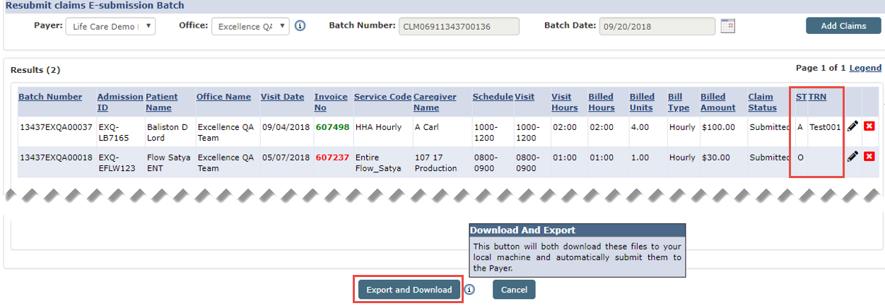 Only claims with a TRN Number and Submission Type of Adjustment or Void can be downloaded and exported.