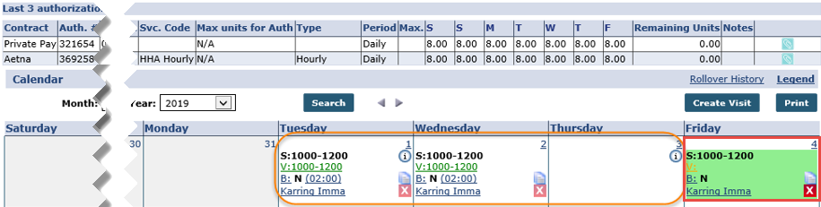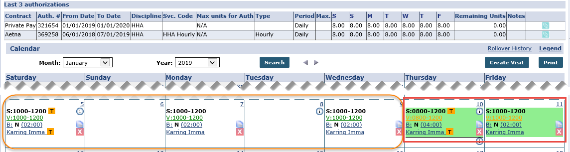 In this configuration example, the Patient is financially responsible (under Private Pay) for the first 3 Service Days (days in which service is provided – in this case January 5, 7, and 9) before the Payer coverage takes effect on the 4th day of service (in this case, January 10, as illustrated in the image below).