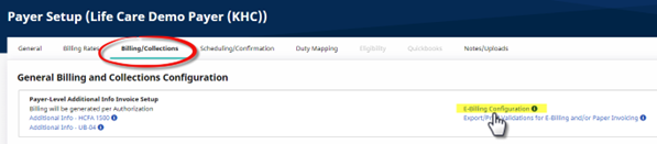 Click the E-Billing Configuration link in the General Billing and Collections Configuration section to open the window.