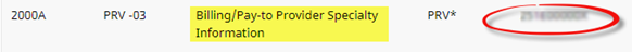 In the E-Billing Configuration window, scroll to Segment ID PRV-03, described as Billing/Pay-to Provider Specialty Information, and verify that the correct code is listed in the Values column.