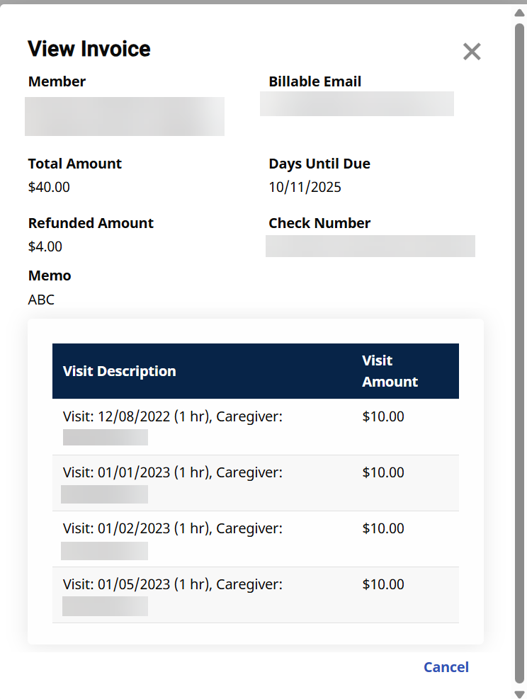 The Invoices tab allows you to review open invoices, paid invoices, and manage refunds.