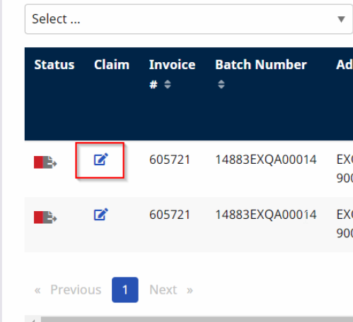 On the applicable claim, click the edit icon to open the Claim Adjustment window.