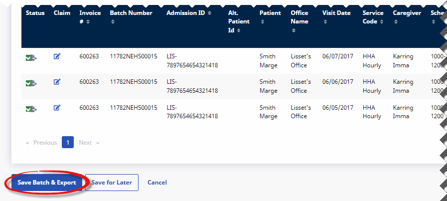 Once the necessary (Original, Adjustment, or Void) claim adjustments have been made, click the Save Batch & Export button to create the resubmission batch.