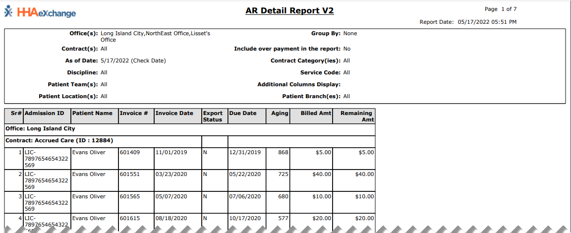 The Collection Report, Detail View under Action > Collection displays information from the Collection Dashboard in the Detail View. This report breaks down the information by Patient according to the search parameters set on the Collection page. To run this report: