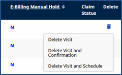 Select Delete Visit and Schedule to unbill the visit, invoice, or batch and delete all visit information (both schedule and confirmation).