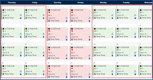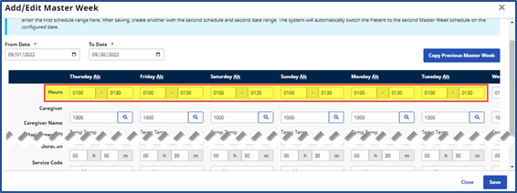 Using the parameters selected above, a Master Week is created with visits of 1 hour per day.