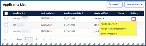 Use the Ellipsis… under the Actions column to access applicable actions for the corresponding Applicant. The following sections cover the actions available to perform under the Actions column.