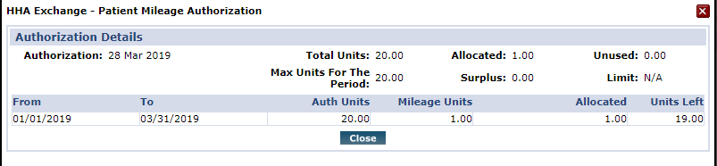 The pre-selected Authorization Number is the one which the mileage is applied based on the selected Patient, Contract, Service Code, and Mileage Date.