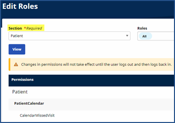 To access this permission, go to Admin > User Management > Edit Roles and select Patient in the Section dropdown: