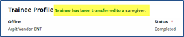 The Trainee’s Profile becomes that of Active Caregiver.