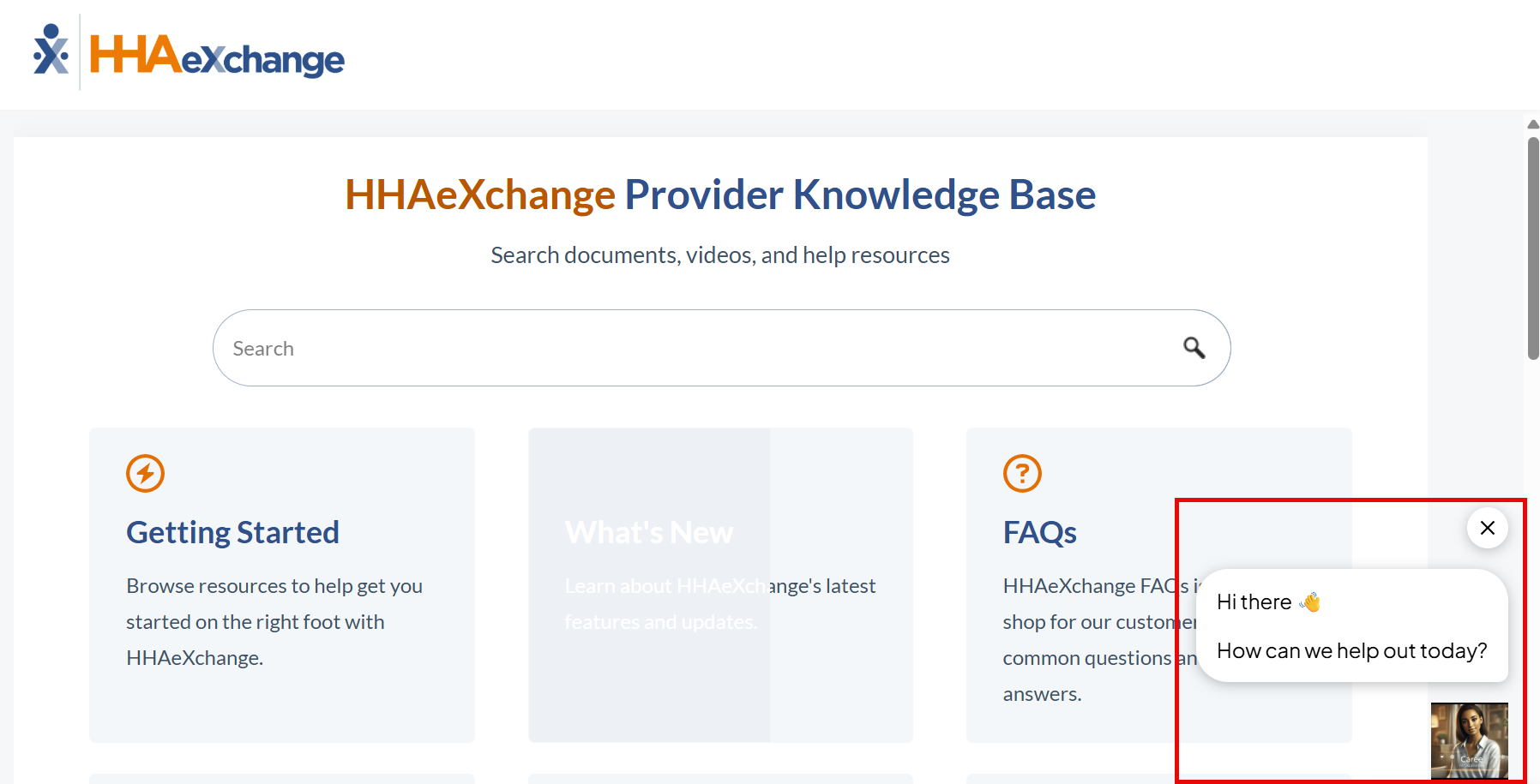 Caree Virtual Assistant is an AI search feature added to the HHAeXchange Texas Knowledge Base to help you find answers to your questions faster. Caree is located at the bottom right side of the Texas Knowledge Base screen.
