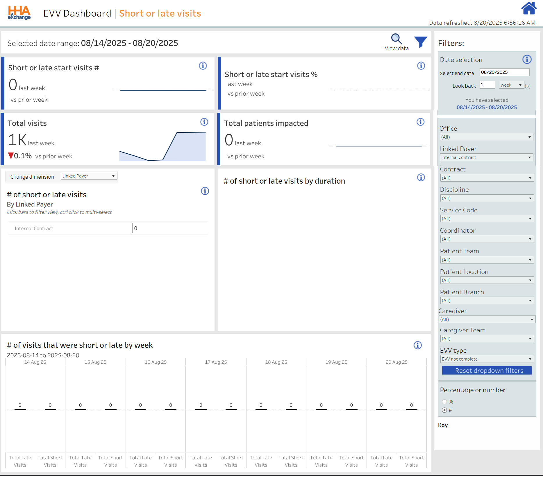 Number of EVV visits for the last week in comparison to the prior week. |