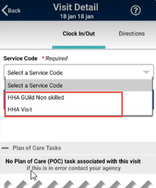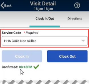 On Clock Out, the Caregiver can change the visit’s Service Code if another Code is available.