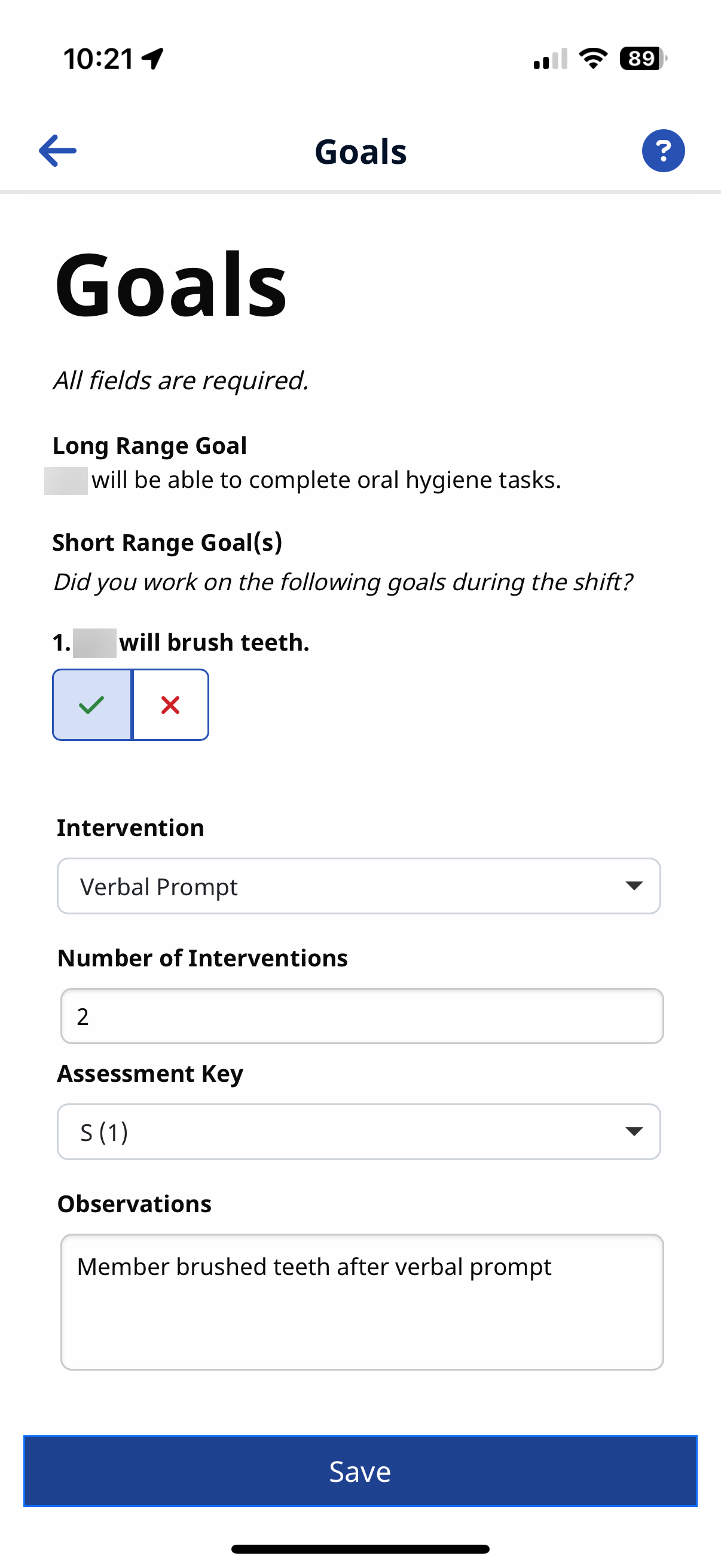 Use the Goals feature on the Mobile App to answer questions and track the progress of Person-Centered Plans (PCP) that help patients be self sufficient as a part of Care Planning in IDD/DDD programs. This feature is enabled by the Agency.