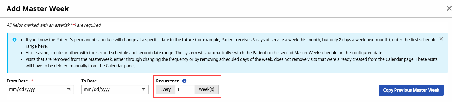 Several changes have been applied to the Master Week function in the new UI, described in the following subsections.