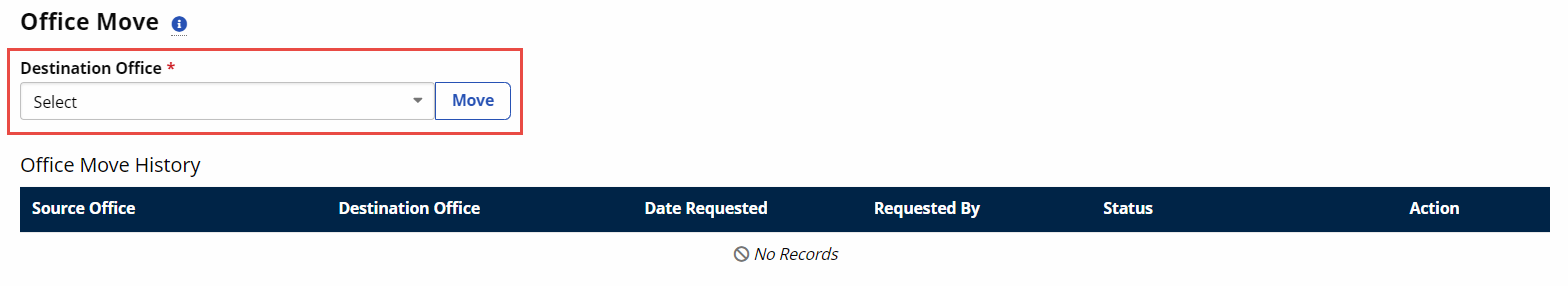 Select the Destination Office (value) from the dropdown field and click the Move button.