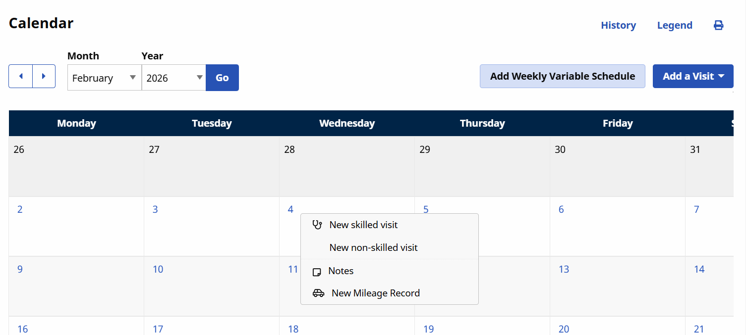 The system applies the EVV and duties to the scheduled visit on all of the Patient Calendars.