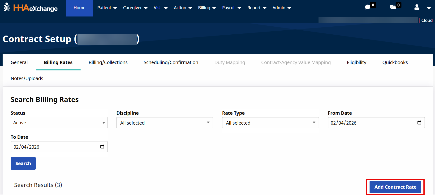 Go to Admin > Contract Setup > Search Contract and then select the Contract authorizing the visits.