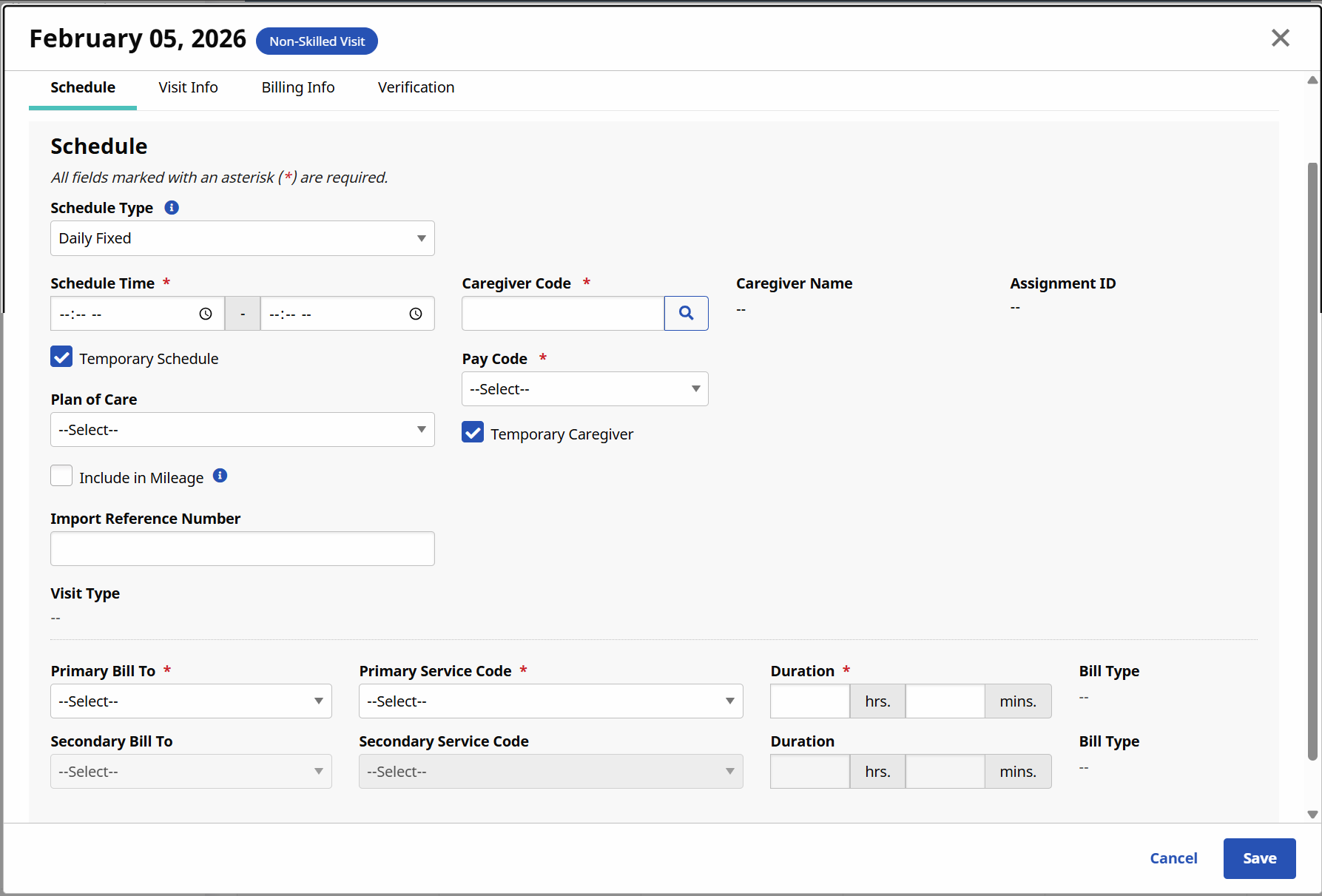The Visit Start and End Time must be identical all of the Patients in the Cluster Visit. Complete the following steps to schedule the Cluster Visits.