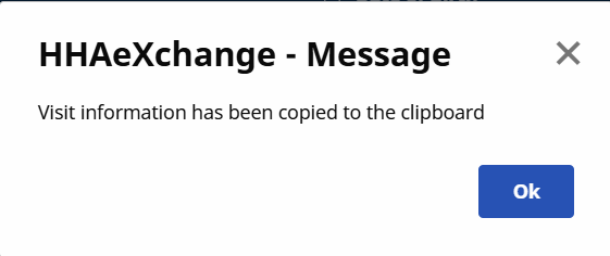 A Visit information has been copied to the clipboard popup message appears, click Ok.