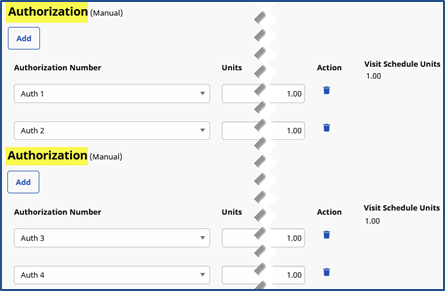 Over or under applying Authorization Units to a visit results in a validation error. For example, if a single Authorization Unit is applied a to a visit scheduled for 2 hours, one is only authorizing a single hour of the visit. In the other hand, applying 3 Authorization Units to a 2-hour visit authorizes an hour of non-scheduled service.